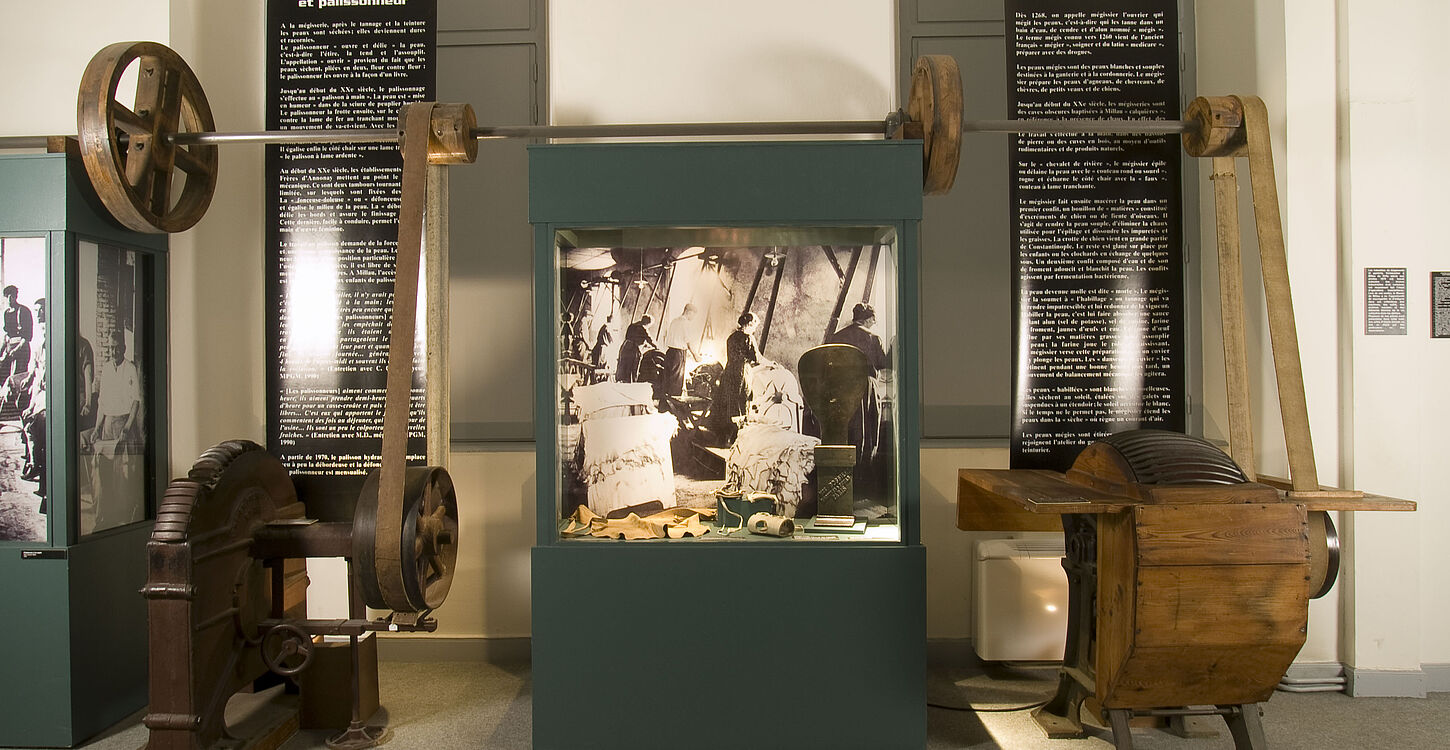 Au sein des espaces d'exposition permanente sont abordés les multiples aspects techniques, fonctionnels, esthétiques ou symboliques du gant ainsi que l'histoire écoonomique et sociale liée à cette industrie peaussière ayant contribué à faire de Millau, au début du XXe siècle, la capitale de la ganterie à travers toute l'Europe.