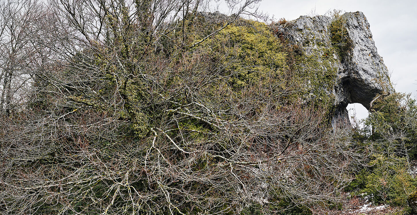 Éric Bourret, photographe marcheur, a longuement arpenté le Larzac méridionial dans le cadre d'une résidence de création avec le Musée de Lodève. Il suit le travail débuté avec d'autres itinérances contemplatives, à travers le globe : Birmanie, Yemen, Afrique du Sud. Il saisait, au rythme de ces pas, les mystères des lieux imperceptibles au premier regard.